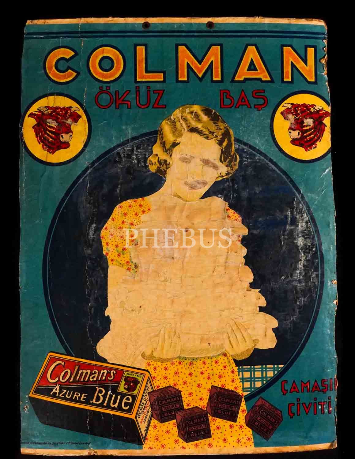 COLMAN "ÖKÜZ BAŞ" Çamaşır Çiviti reklam kartoneti, İstanbul Belediyesi İlanat Pullu, 31x41 cm