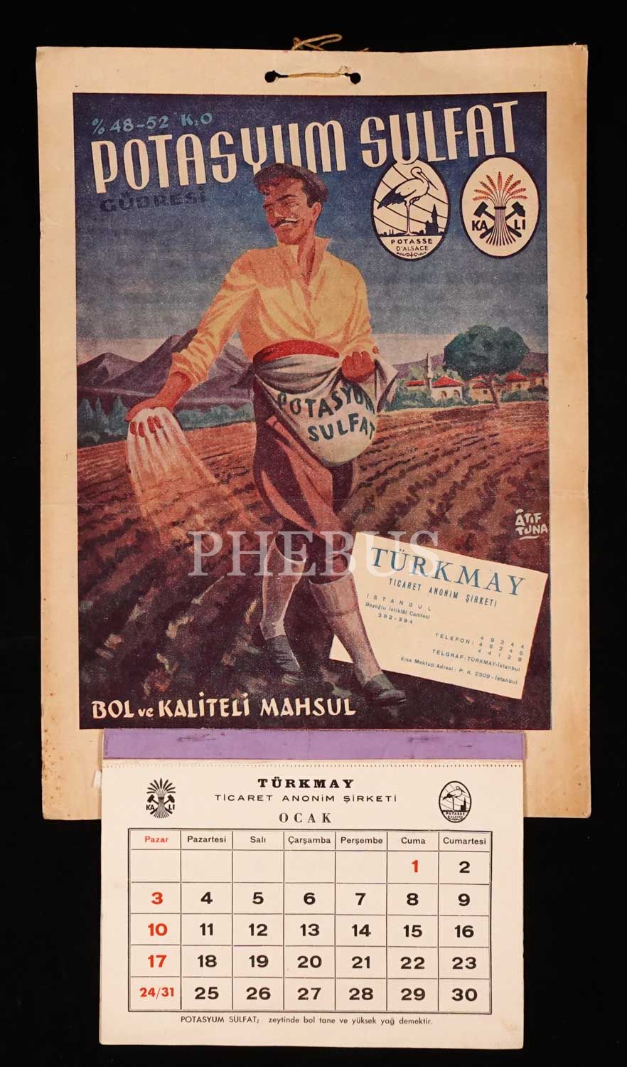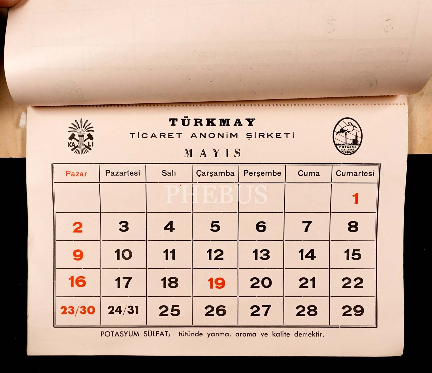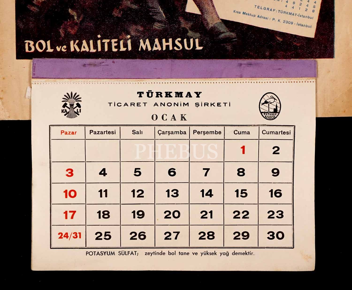 TÜRKMAY Ticaret Anonim Şirketi "POTASYUM SULFAT" reklamlı duvar takvimi, 45x25 cm