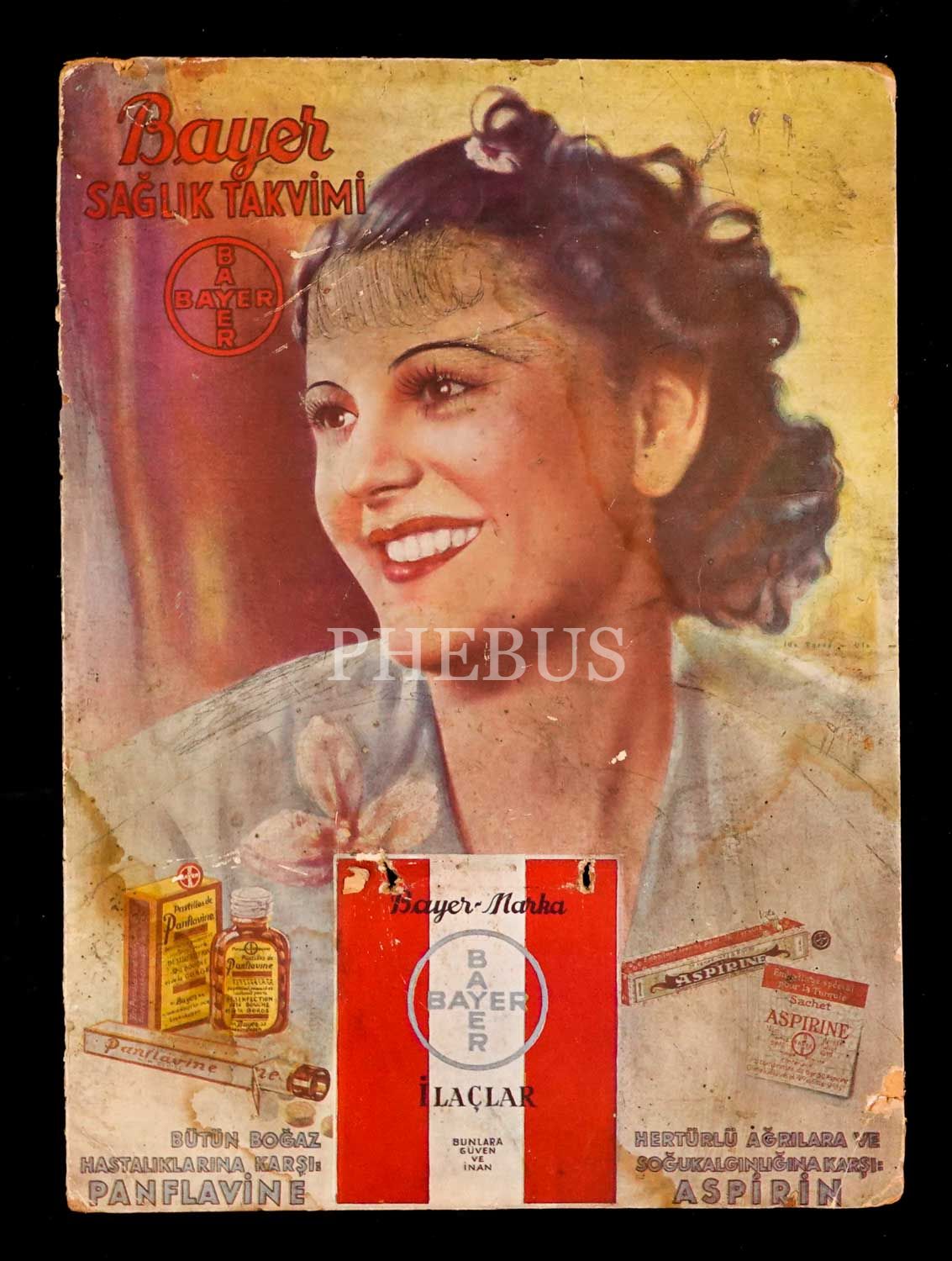 "Panflavine" ve "Aspirin" reklamlı BAYER Sağlık Takvimi, Türkiye Basımevi (İstanbul), Damga Pullu, 25x34 cm