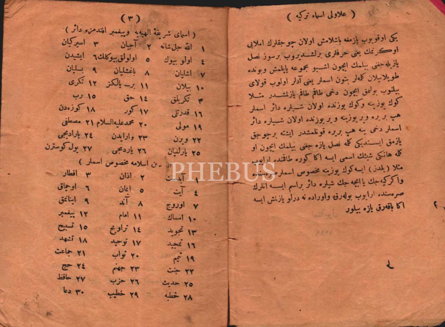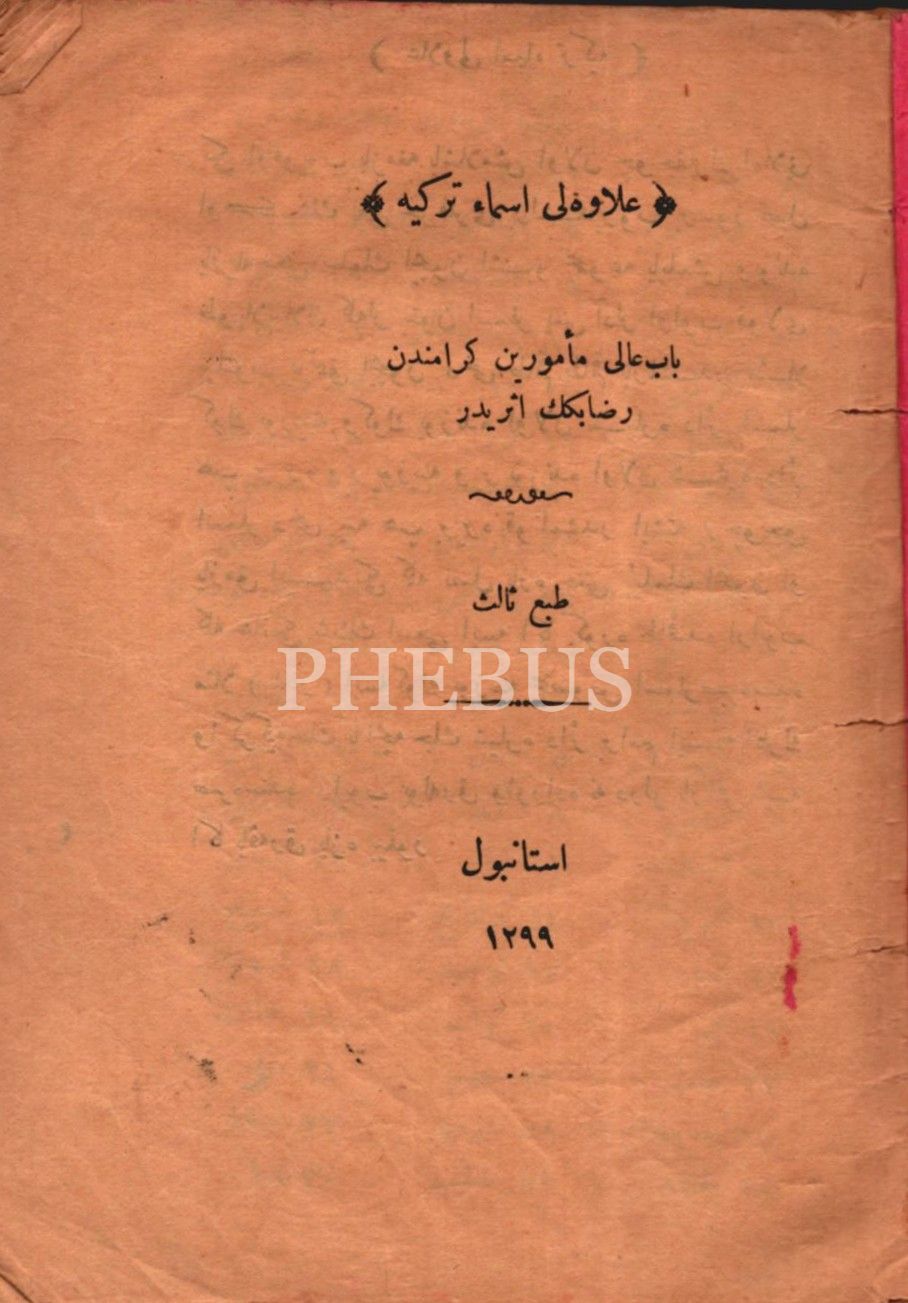 İLÂVELİ ESMÂ-İ TÜRKİYYE, Rıza Bey, İstanbul 1299, 32 s., 12x17 cm