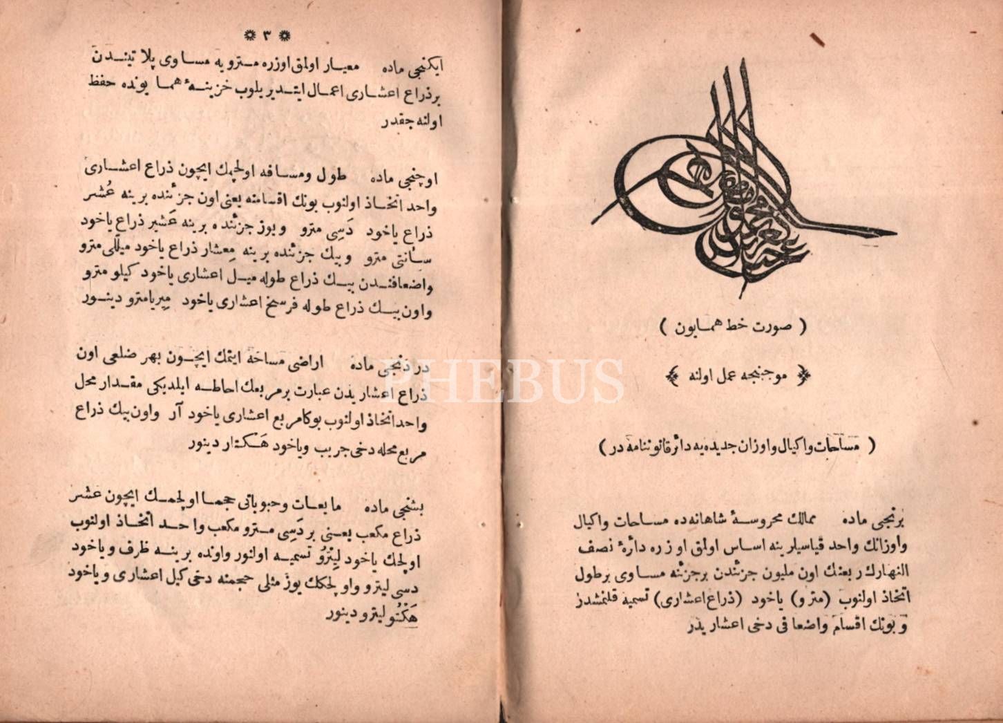 BİLUMÛM VİLÂYETLER VÂRİDÂT-I ÖŞRİYYESİNİN MÜZÂYEDE VE İHÂLE VE İDÂRESİ HAKKINDA TA´LÎMÂT-I CEDÎDE, 35 s.; AFYON TOHUMU ZER´İNE DÂİR TA´LÎMÂT, 8 s.; MESÂHÂT VE EKYÂL VE EVZÂN-I CEDÎDEYE DÂİR KÂNÛNNÂME, Matbaa-i Amire, 1286, 6 s., 13x20 cm