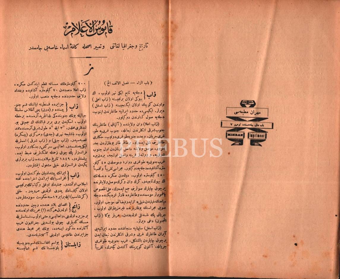 KÂMÛSÜ´L-A´LÂM (4. Cilt), Ş[emseddin] Sami, Mihran Matbaası, İstanbul 1311, 2401 ilâ 3200. sayfalar, 17x24 cm