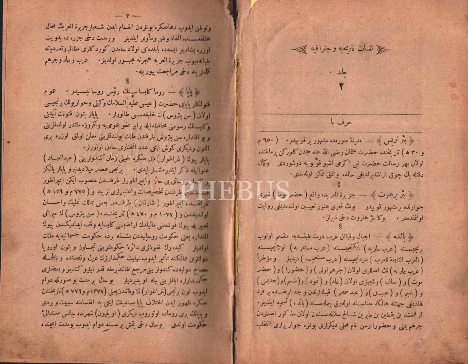 LÜGÂT-İ TÂRÎHİYYE VE COĞRAFYA (2. Cilt), Ahmed Rifat, Mahmud Bey Matbaası, İstanbul 1299, 314 s., 15x23 cm