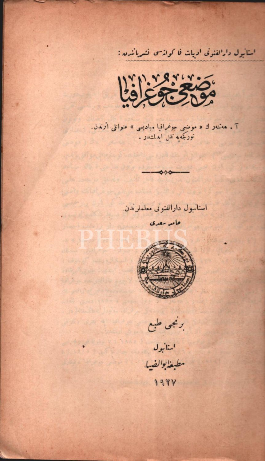 MEVZİÎ COĞRAFYA (1. Kısım: Avrupa), A. Hettner, çev. Hamit Sâdi, Matbaa-i Ebüzziya, İstanbul 1929, 126 s., 16x24 cm