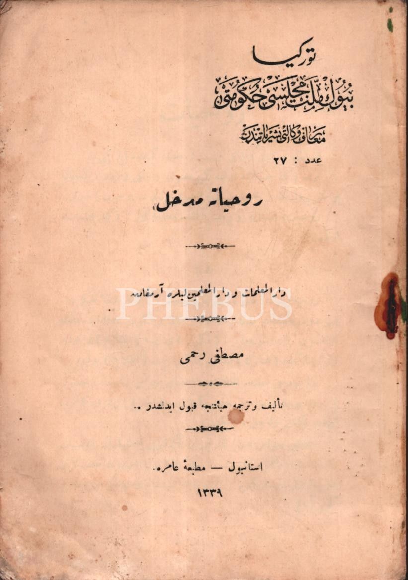 RÛHİYYÂTA MEDHAL, Mustafa Rahmi [Balaban], Matbaa-i Amire, İstanbul 1339, 43 s., 14x20 cm