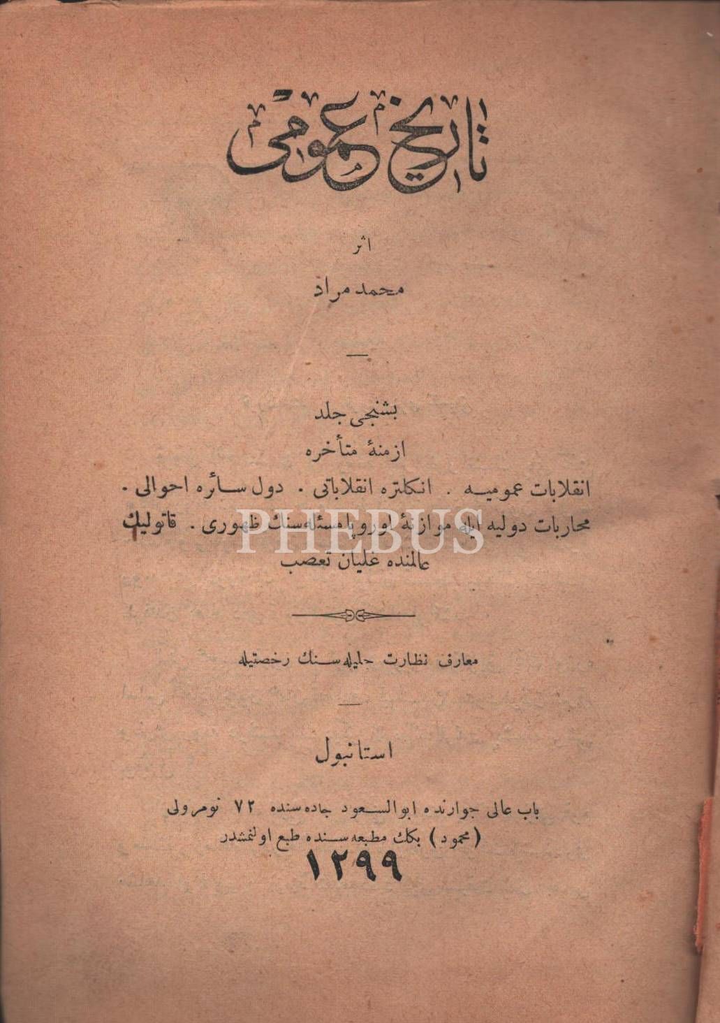 TÂRÎH-İ UMÛMİ (2., 4. ve 5. ciltler), [Mizancı] Mehmed Murad, İstanbul 1299-1328, 367+462+444 s., 14x19 cm