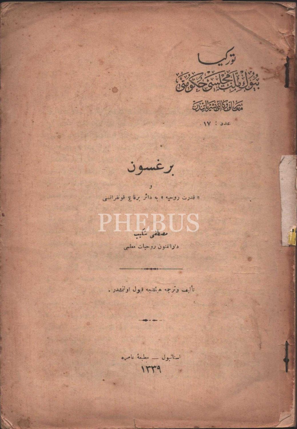BERGSON VE "KUDRET-İ RÛHİYYE"YE DÂİR BİRKAÇ KONFERANSI, Mustafa Şekib [Tunç], Matbaa-i Amire, İstanbul 1339, 206 s., 17x24 cm