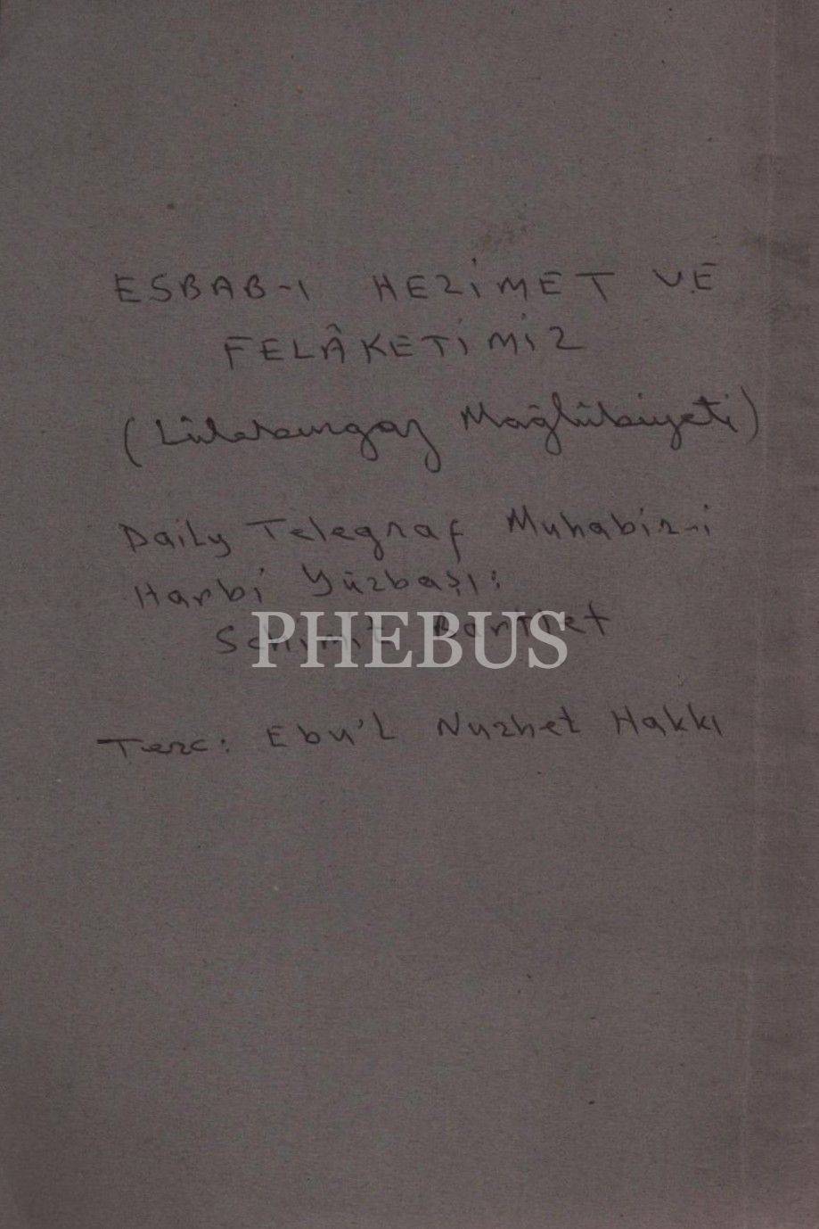 ESBÂB-I HEZÎMET VE FELÂKETİMİZ I (Lüleburgaz Muhârebesinde Nasıl ve Niçin Mağlûb Olduk?), Ashmead Bartlett, çev. Ebunnüzhet Hakkı, Kitabhane-i İslam ve Askerî, İstanbul 1328, 55 s., 12x18 cm
