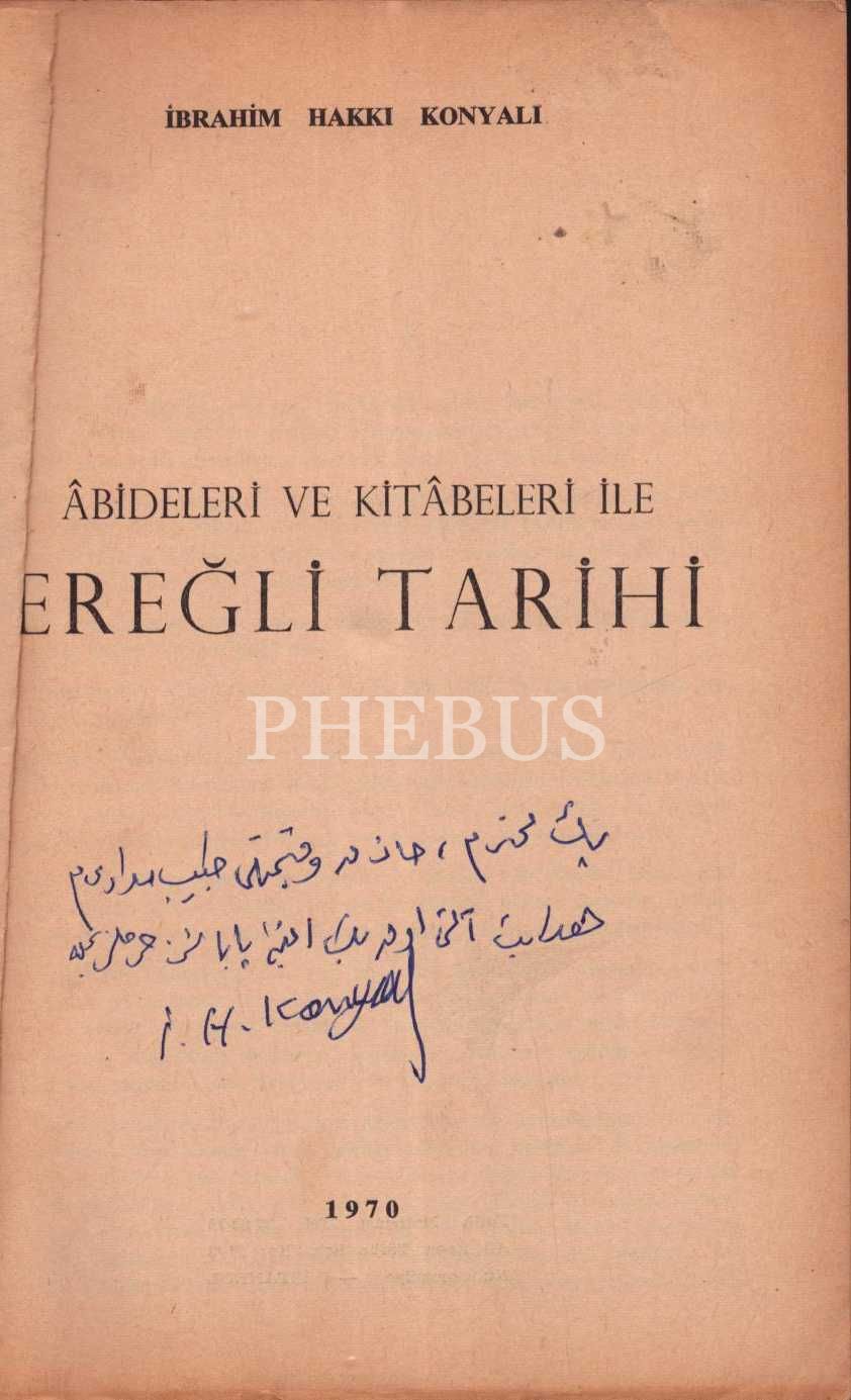 Âbideleri ve Kitâbeleri ile KONYA EREĞLİ´Sİ TARİHİ, İbrahim Hakkı Konyalı, 1970, Fatih Matbaası, 17x24 cm, İTHAFLI VE İMZALI...