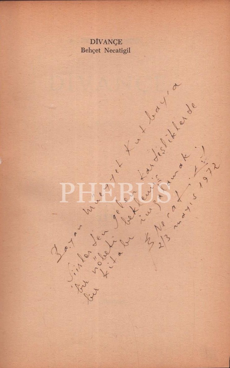 DİVANÇE (Şiirler), Behçet Necatigil, 1965, De Yayınevi, 53 sayfa, 14x20 cm, İTHAFLI VE İMZALI...