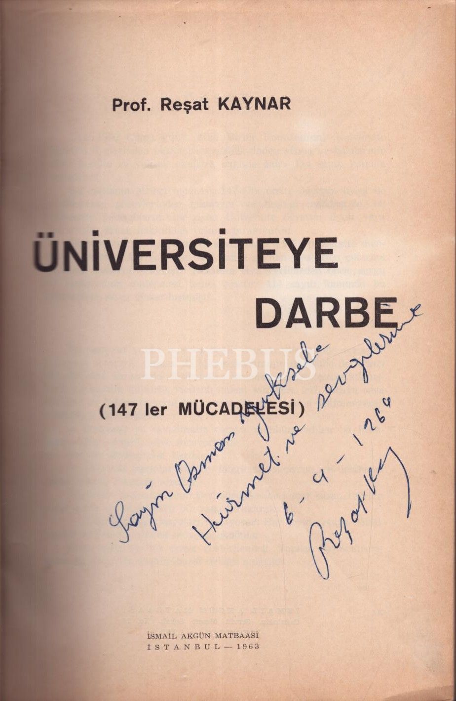 ÜNİVERSİTEYE DARBE (147´ler Mücadelesi), Reşat Kaynar, 1963, İsmail Akgün Matbaası, 124 sayfa, 17x24 cm, İTHAFLI VE İMZALI...
