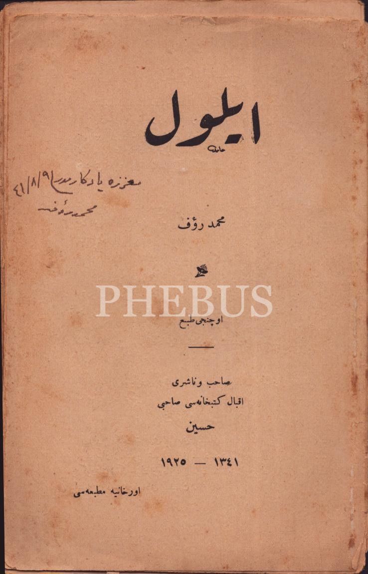 EYLÛL, Mehmed Rauf, 1341, Orhaniye Matbaası, 13x19 cm, İTHAFLI VE İMZALI...