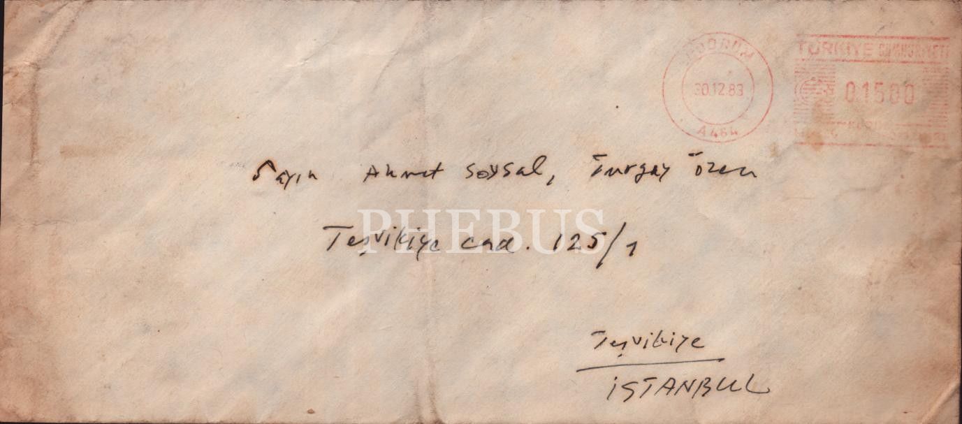 İlhan Berk´in Ahmet Soysal ile Turgay Özen´e hitaben kaleme aldığı 30 Aralık 1983 tarihli, imzalı mektup, 16x22 cm
