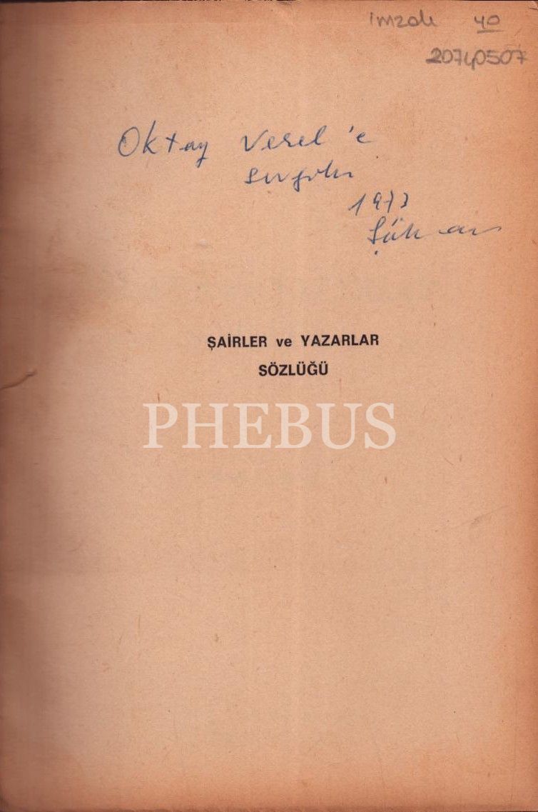 ŞAİRLER VE YAZARLAR SÖZLÜĞÜ, hazırlayan: Şükran Kurdakul, 1971, Ataç Kitabevi, 238 sayfa, 14x20 cm, İTHAFLI VE İMZALI...