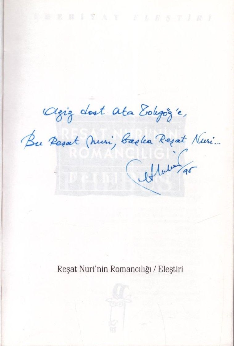 REŞAT NURİ´NİN ROMANCILIĞI, Fethi Naci, 1995, Oğlak Yayıncılık, 287 sayfa, 13x20 cm, İTHAFLI VE İMZALI...