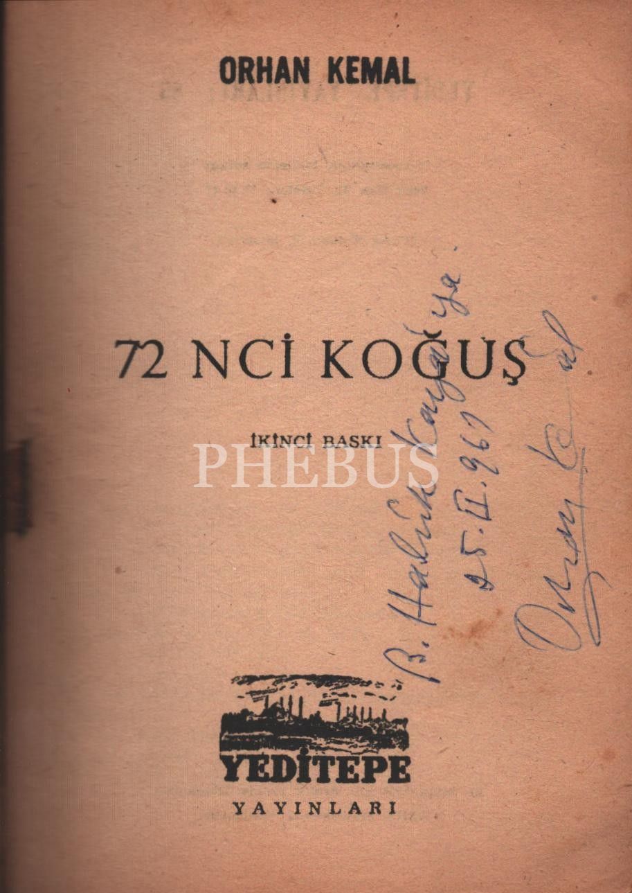 72NCİ KOĞUŞ, Orhan Kemal, 1958, Yeditepe Yayınları, 105 sayfa, 12x17 cm, İTHAFLI VE İMZALI...