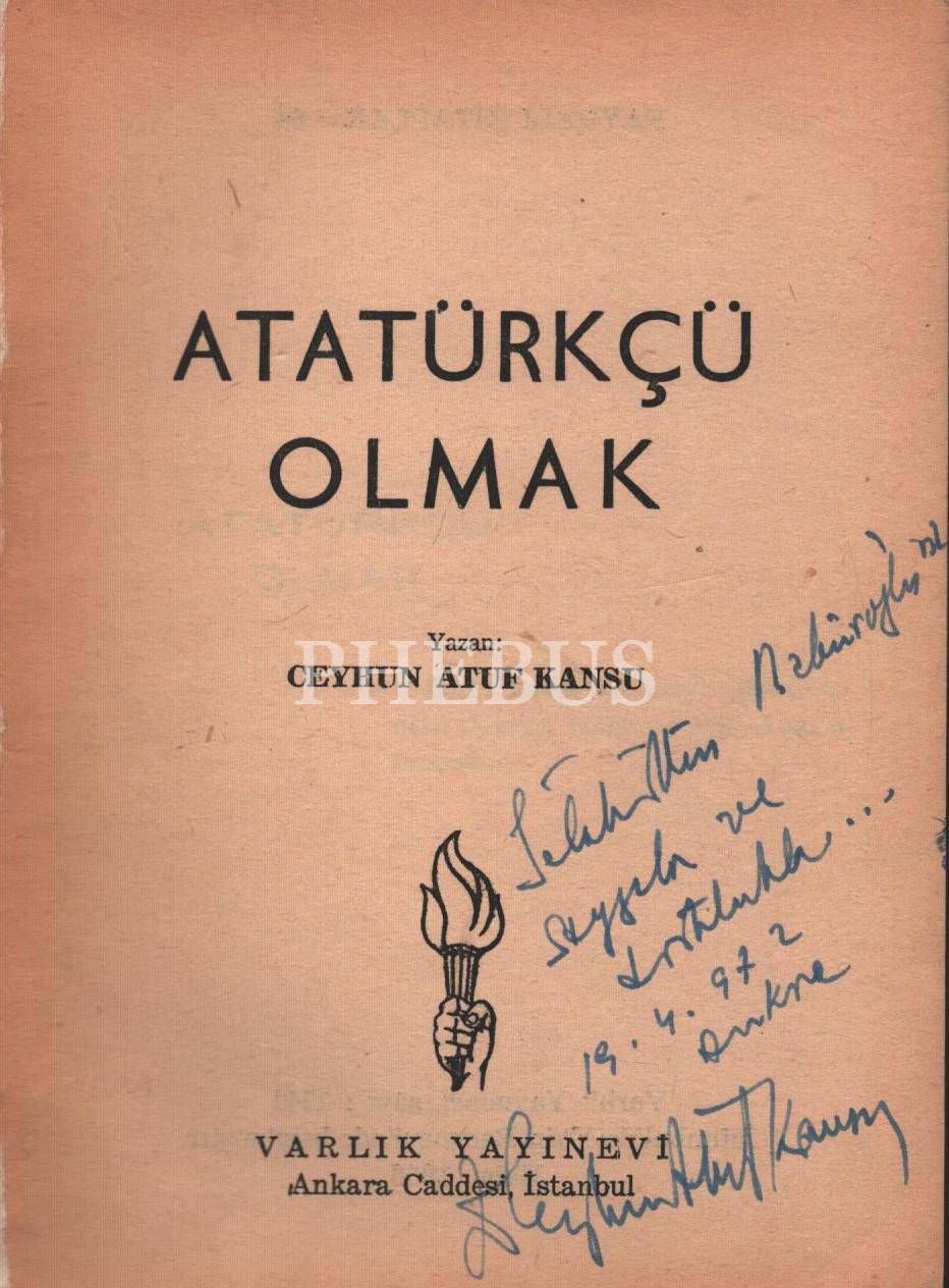 ATATÜRKÇÜ OLMAK, Ceyhun Atuf Kansu, 1966, Varlık Yayınları, 173 sayfa, 12x17 cm, İTHAFLI VE İMZALI...