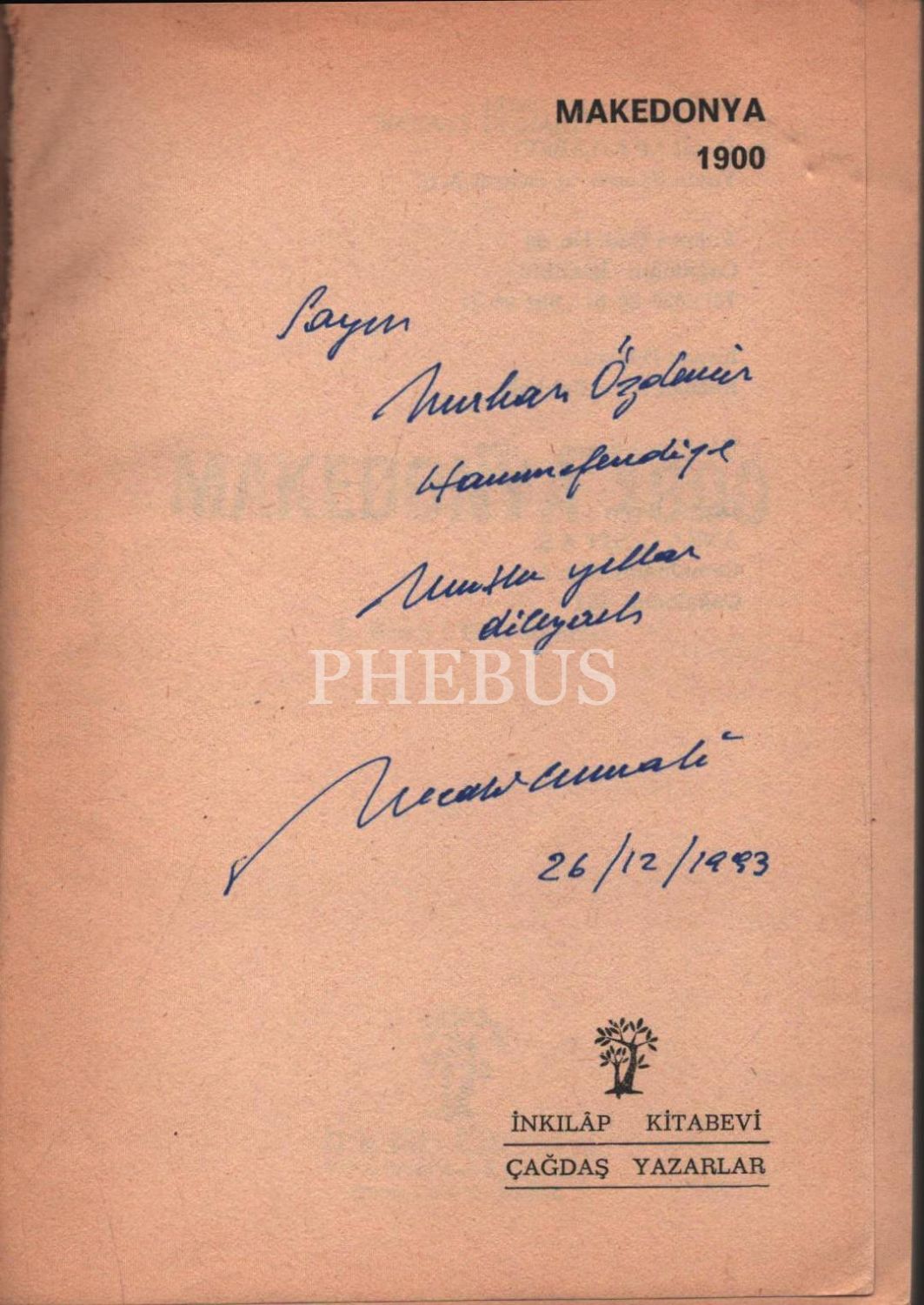 MAKEDONYA 1900 (1. Kitap: Dilâ Hanım), Necati Cumalı, 1986, İnkılâp Kitabevi, 216 sayfa, 14x20 cm, İTHAFLI VE İMZALI...