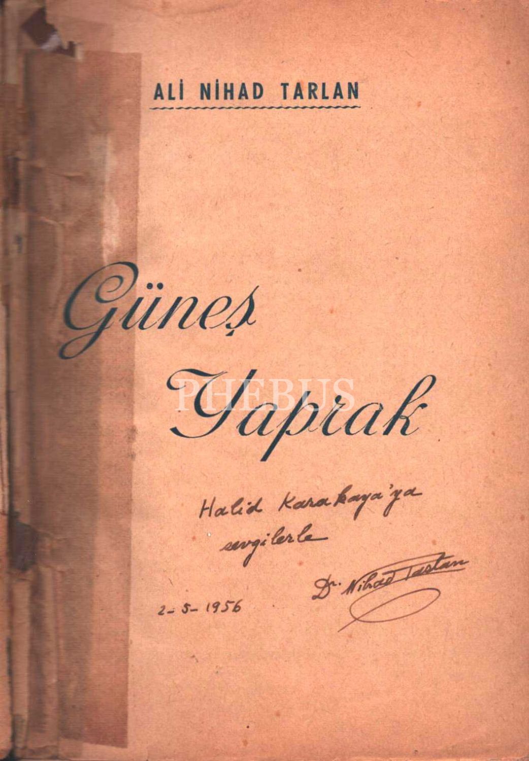 GÜNEŞ YAPRAK, Ali Nihad Tarlan, 1953, Anıl Matbaası, 132 sayfa, 14x20 cm, İTHAFLI VE İMZALI...