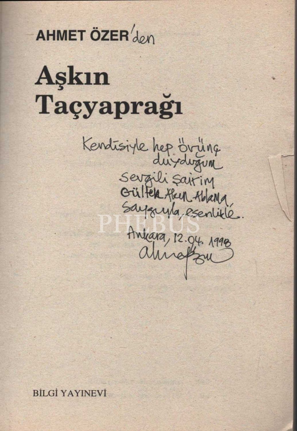 AŞKIN TAÇYAPRAĞI, Ahmet Özer, 1998, Bilgi Yayınevi, 94 sayfa, 14x20 cm, İTHAFLI VE İMZALI...