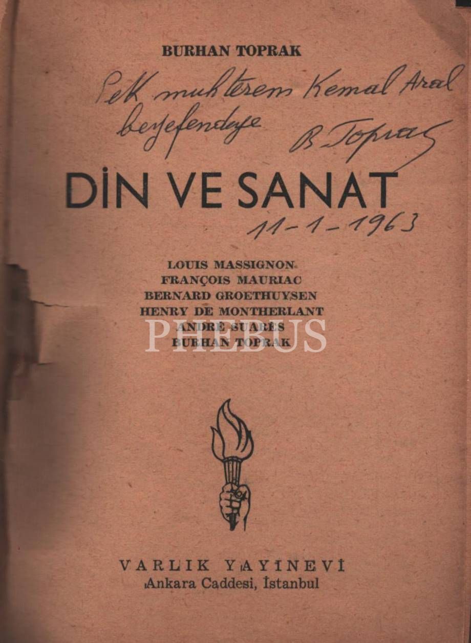 DİN VE SANAT, Burhan Toprak, 1962, Varlık Yayınları, 112 sayfa, 12x17 cm, İTHAFLI VE İMZALI...