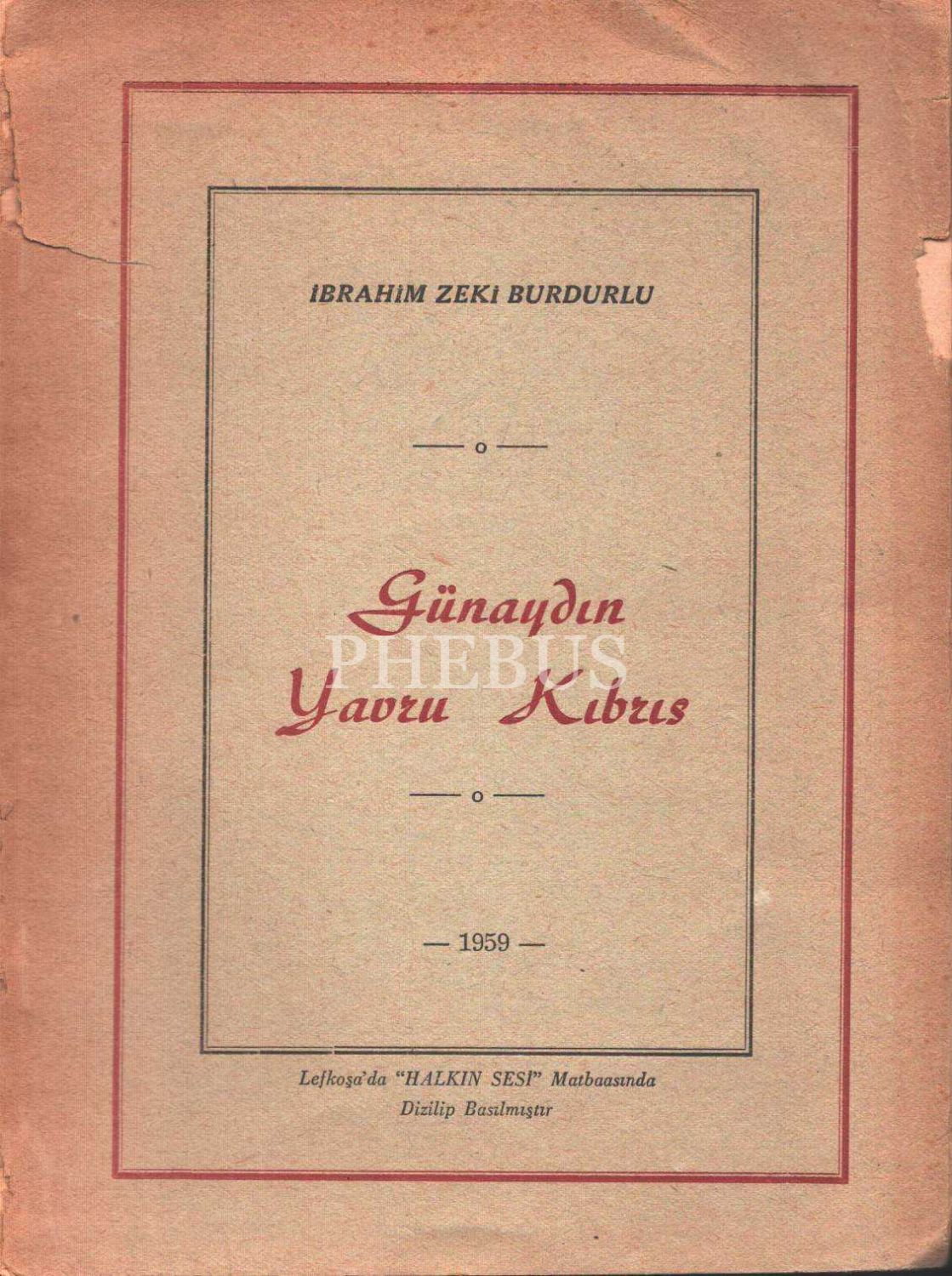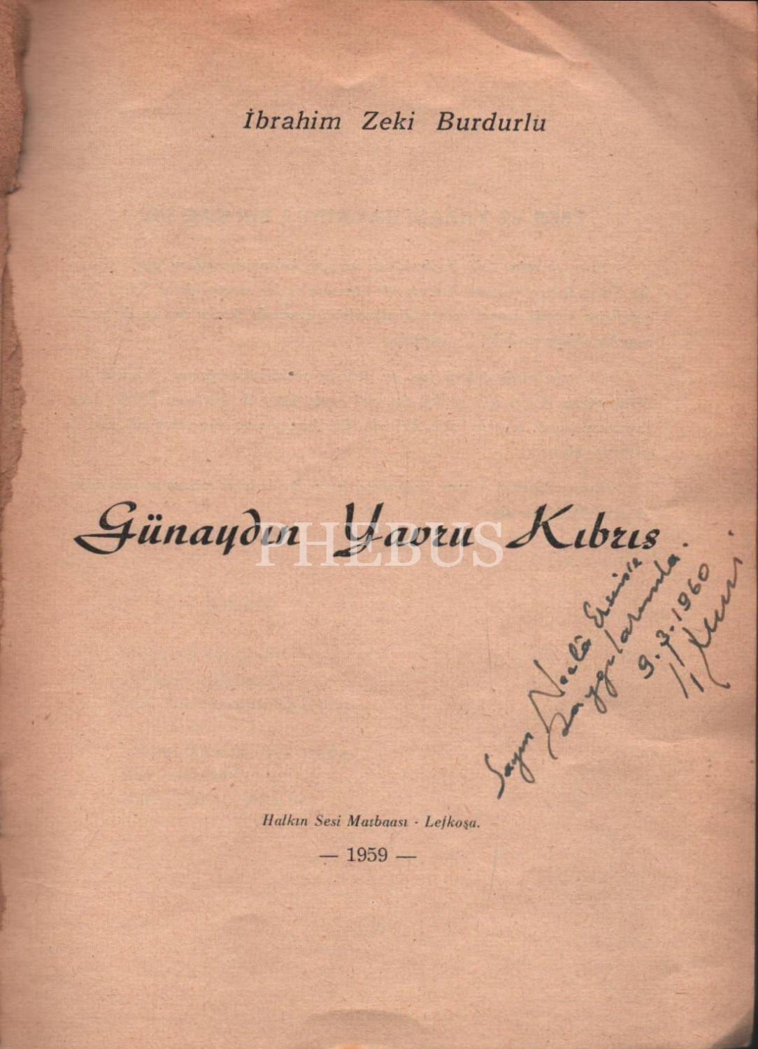GÜNAYDIN YAVRU KIBRIS, İbrahim Zeki Burdurlu, 1959, 61 sayfa, 15x20 cm, İTHAFLI VE İMZALI...
