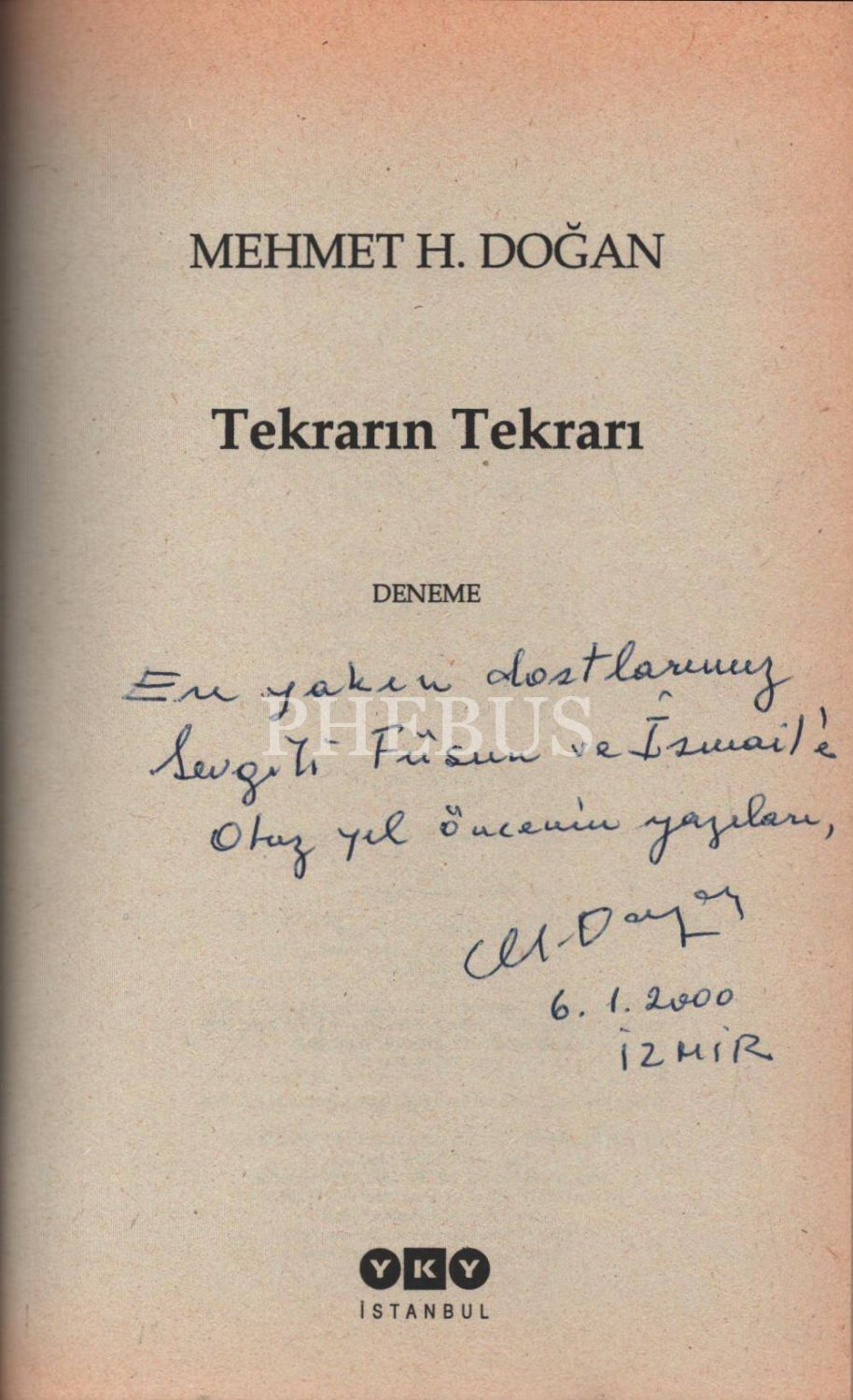 TEKRARIN TEKRARI (Deneme), Mehmet H. Doğan, 1999, Yapı Kredi Yayınları, 327 sayfa, 14x21 cm, İTHAFLI VE İMZALI...