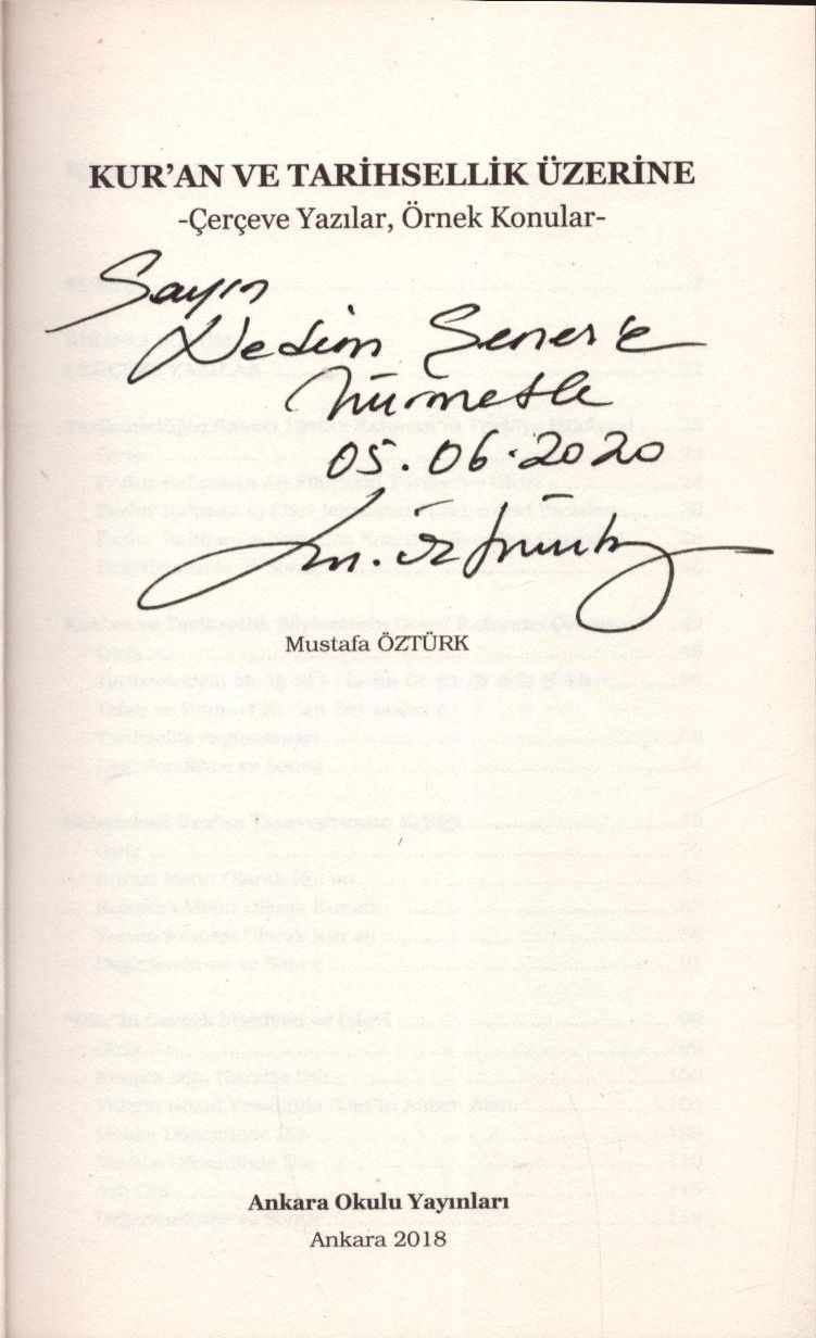 KUR´AN VE TARİHSELLİK ÜZERİNE (Çerçeve Yazılar, Örnek Konular), Mustafa Öztürk, 2018, Ankara Okulu Yayınları, 333 sayfa, 14x21 cm, İTHAFLI VE İMZALI...