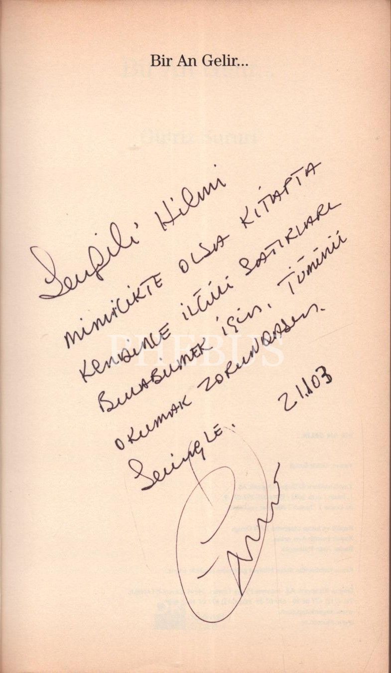 BİR AN GELİR, Gülriz Sururi, 2003, Doğan Kitapçılık, 454 sayfa, 14x23 cm, İTHAFLI VE İMZALI...