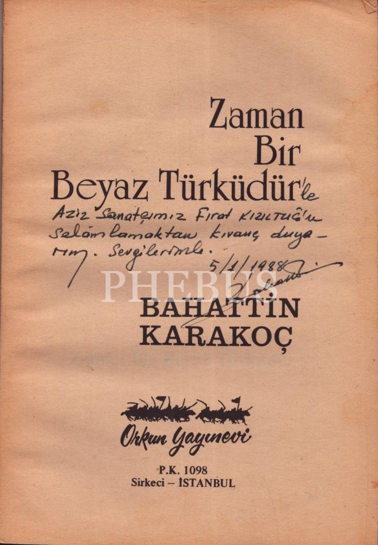 ZAMAN BİR BEYAZ TÜRKÜDÜR, Bahattin Karakoç, 1984, Orkun Yayınevi, 95 sayfa, 13x19 cm, İTHAFLI VE İMZALI...