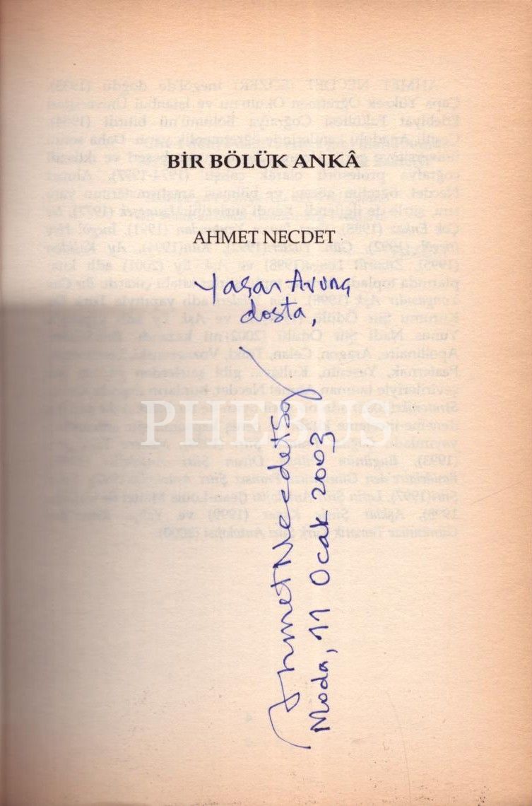 BİR BÖLÜK ANKÂ, Ahmet Necdet, 2003, Gerçek Sanat Yayınları, 205 sayfa, 14x20 cm, İTHAFLI VE İMZALI...
