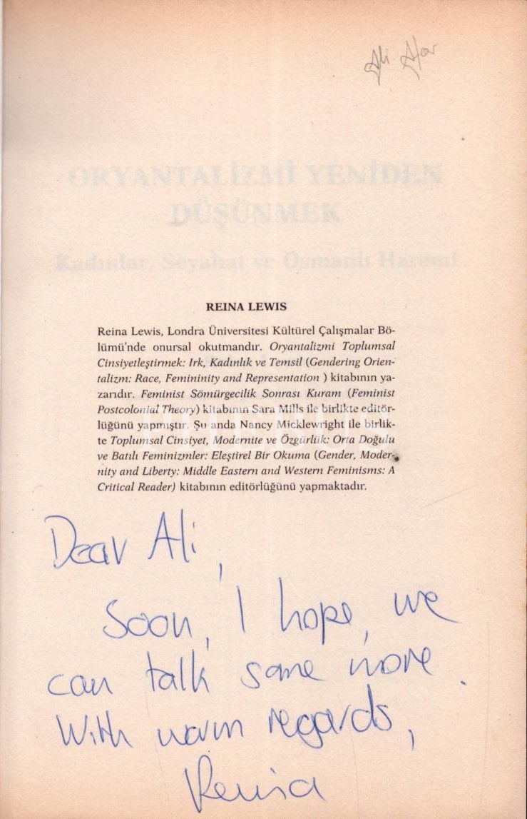 ORYANTALİZMİ YENİDEN DÜŞÜNMEK (Kadınlar, Seyahat ve Osmanlı Haremi), Reina Lewis, çeviren: Beyhan Uygun-Aytemiz & Şeyda Başlı, 2006, Kapı Yayınları, 424 sayfa, 14x20 cm, yazarından İTHAFLI VE İMZALI...