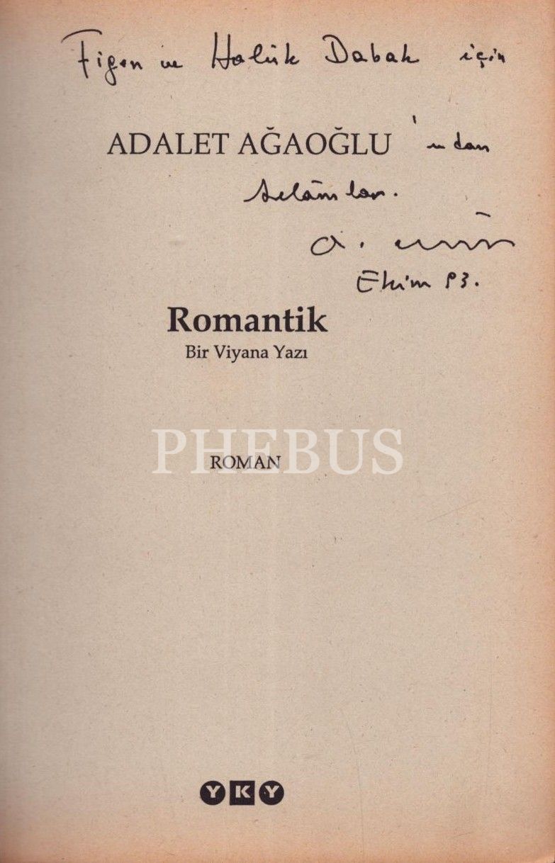 ROMANTİK (Bir Viyana Yazı), Adalet Ağaoğlu, 1993, Yapı Kredi Yayınları, 177 sayfa, 14x21 cm, İTHAFLI VE İMZALI...