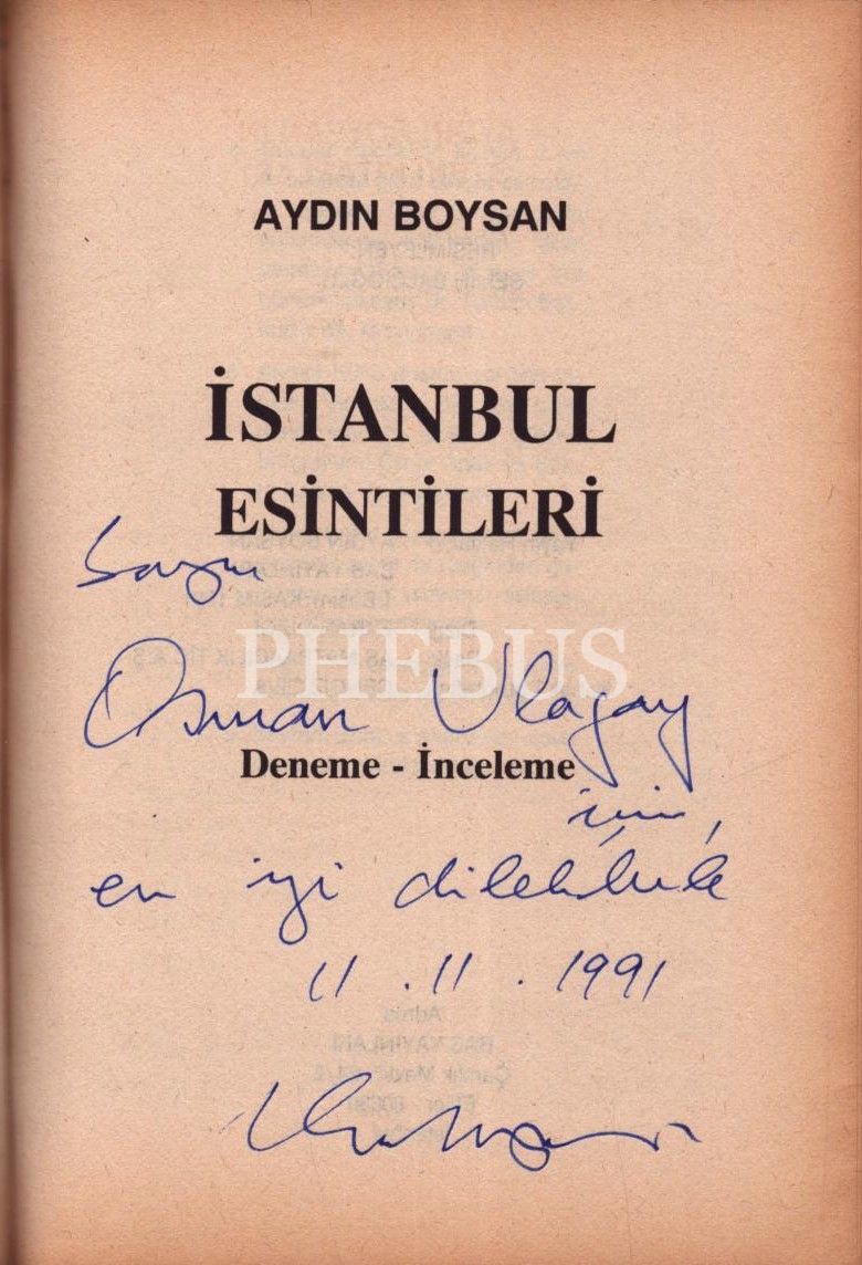 İSTANBUL ESİNTİLERİ (Deneme-İnceleme), Aydın Boysan, 1991, Bas Yayınları, 230 sayfa, 14x20 cm, İTHAFLI VE İMZALI...