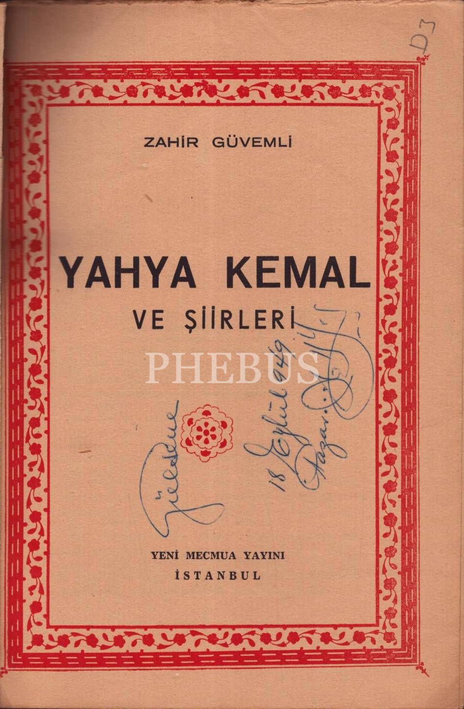 YAHYA KEMAL VE ŞİİRLERİ, Zahir Güvemli, 1948, Yeni Mecmua Yayını, 55 sayfa, 17x25 cm, İTHAFLI VE İMZALI...