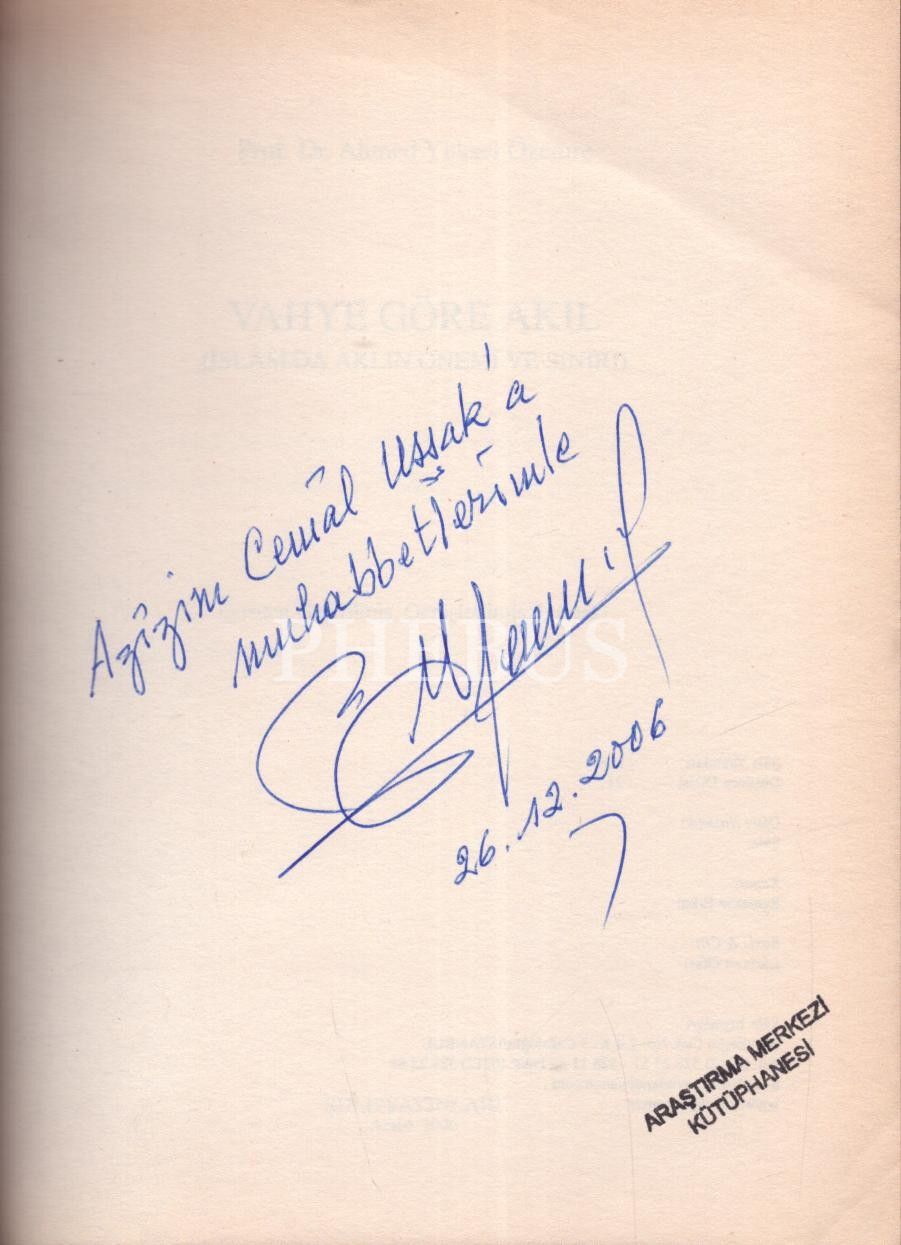 VAHYE GÖRE AKIL (İslâm´da Aklın Önemi ve Sınırı), Ahmed Yüksel Özemre, 2006, Şule Yayınları, 574 sayfa, 17x22 cm, İTHAFLI VE İMZALI...