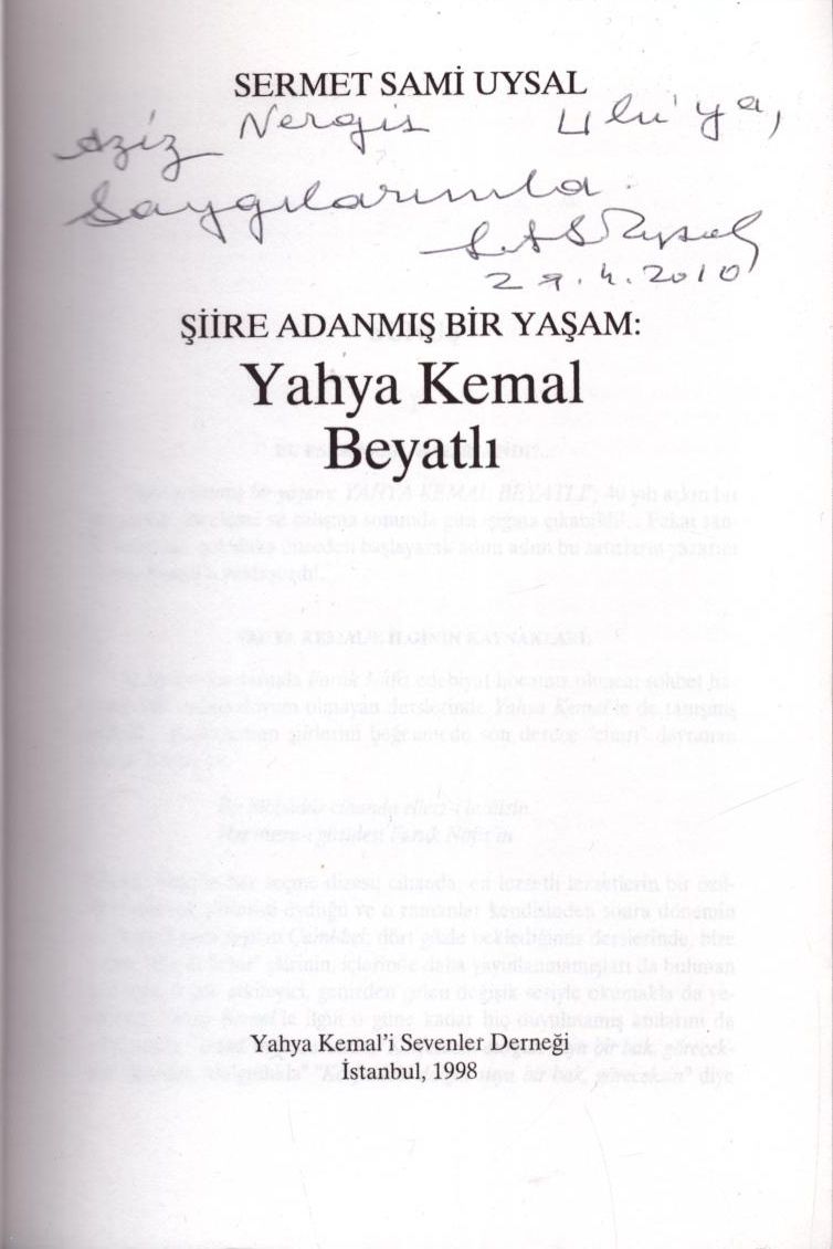 ŞİİRE ADANMIŞ BİR YAŞAM: YAHYA KEMAL BEYATLI, Sermet Sami Uysal, 1998, Yahya Kemal´i Sevenler Derneği, 510 sayfa, 14x20 cm, İTHAFLI VE İMZALI...