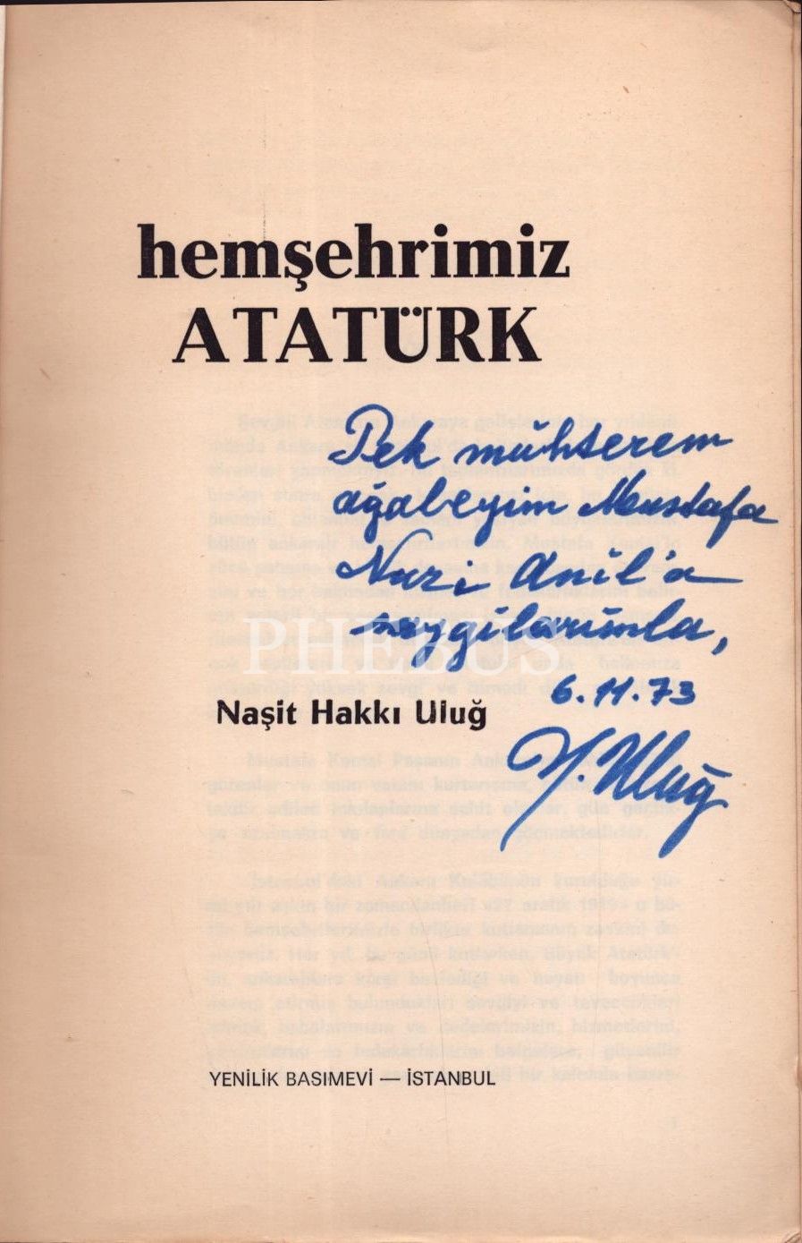 HEMŞEHRİMİZ ATATÜRK, Naşit Hakkı Uluğ, Türkiye İş Bankası Kültür Yayınları, 399 sayfa, 16x24 cm, İTHAFLI VE İMZALI...