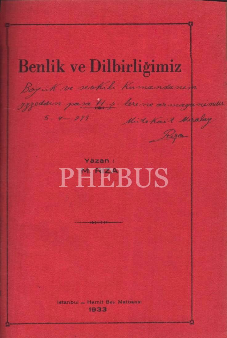 BENLİK VE DİLBİRLİĞİMİZ, M. Rıza, 1933, Hamit Bey Matbaası, 62 sayfa, 14x20 cm, İTHAFLI VE İMZALI...