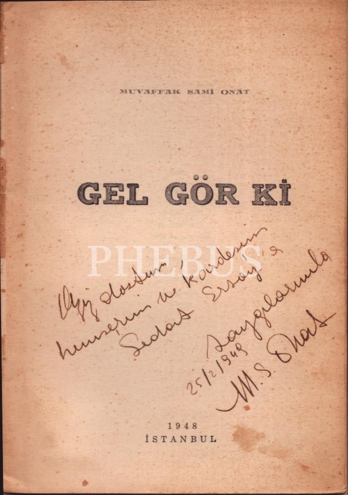 GEL GÖR Kİ, Muvaffak Sami Onat, 1948, Rıza Koşkun Basımevi, 31 sayfa, 13x18 cm, İTHAFLI VE İMZALI...