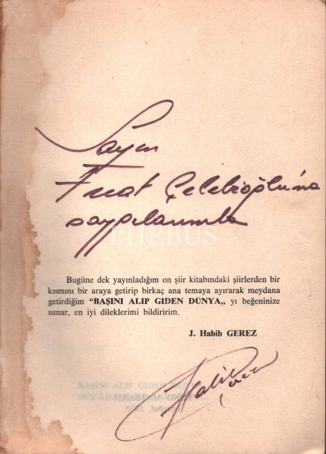 BAŞINI ALIP GİDEN DÜNYA (Şiirler), J. Habib Gerez, 1970, Fono Matbaası, 329 sayfa, 14x20 cm, İTHAFLI VE İMZALI...