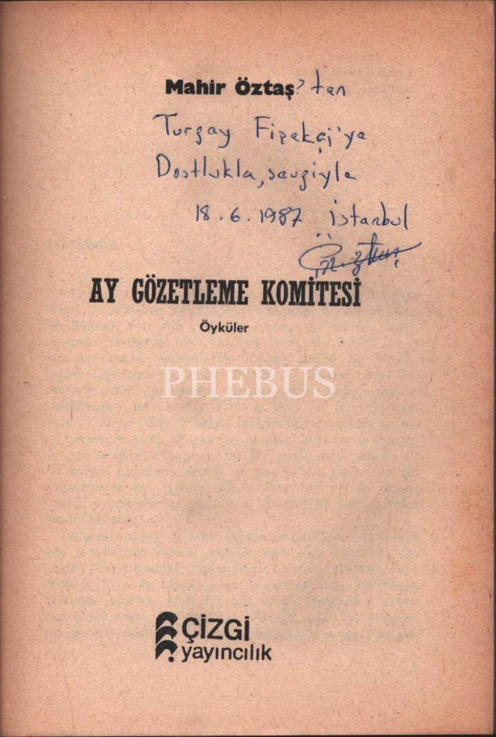 AY GÖZETLEME KOMİTESİ (Öyküler), Mahir Öztaş, 1987, Çizgi Yayıncılık, 149 sayfa, 14x20 cm, İTHAFLI VE İMZALI...