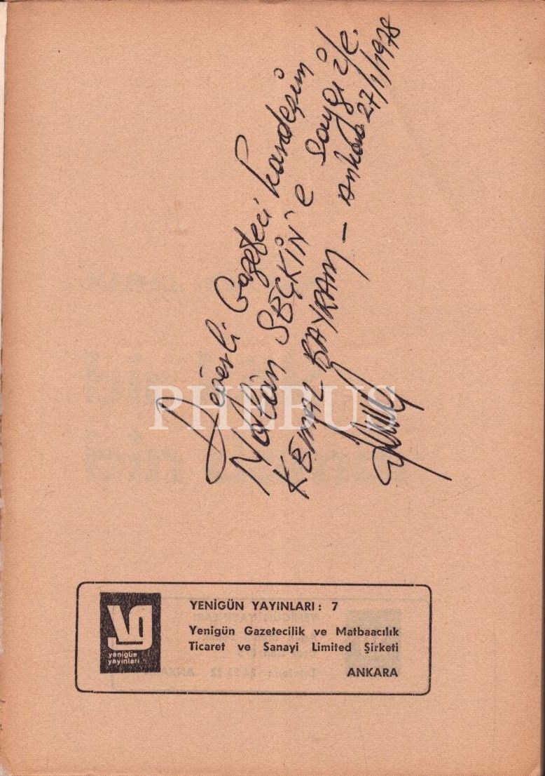 BİR KÖK BİN DAMAR, Kemal Bayram, 1977, Yenigün Yayınları, 120 sayfa, 13x19 cm, İTHAFLI VE İMZALI...