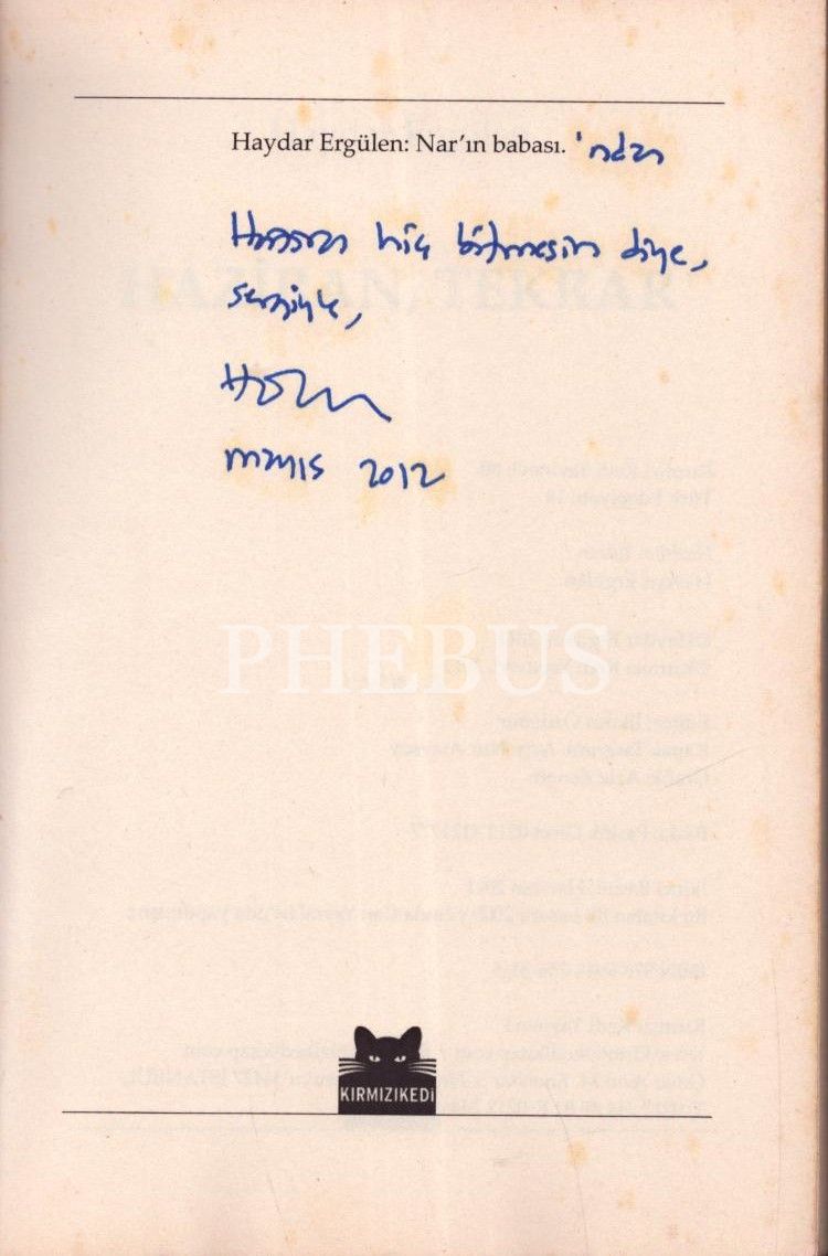 HAZİRAN, TEKRAR, Haydar Ergülen, 2011, Kırmızıkedi Yayınevi, 186 sayfa, 13x19 cm, İTHAFLI VE İMZALI...