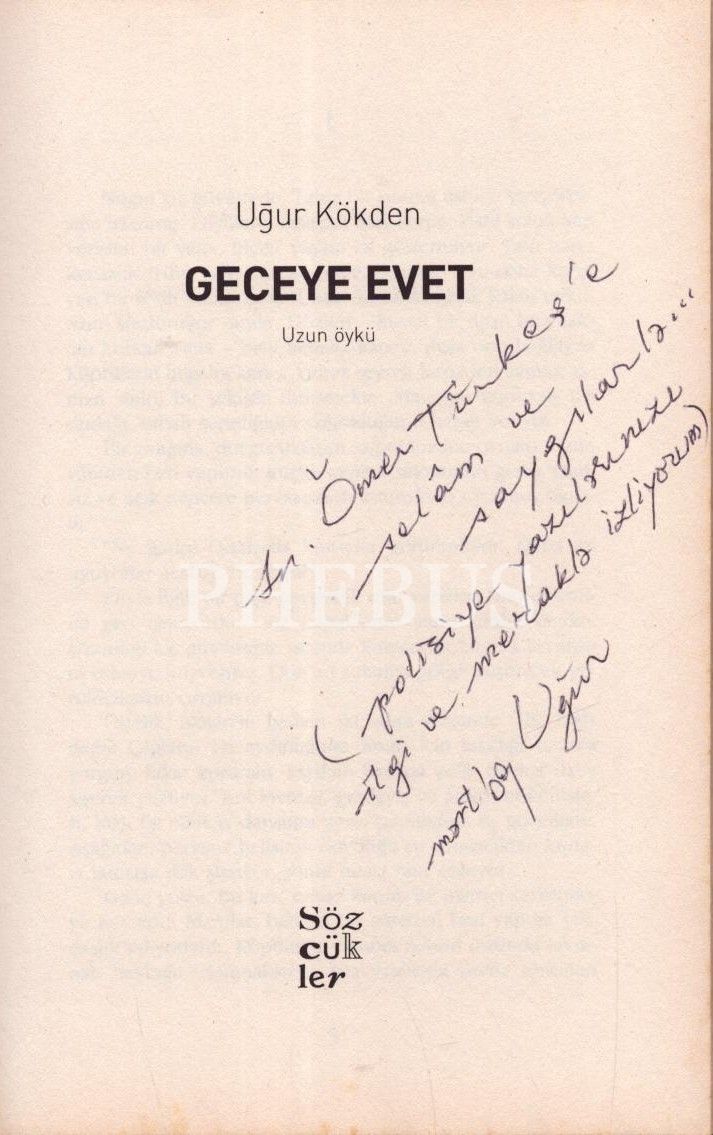 GECEYE EVET, Uğur Kökden, 2009, Sözcükler Yayınları, 95 sayfa, 14x20 cm, İTHAFLI VE İMZALI...