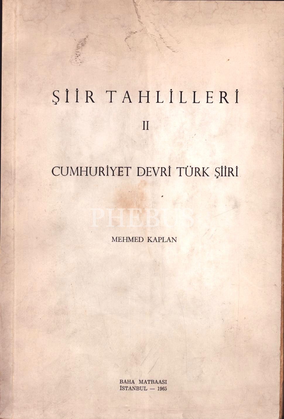 ŞİİR TAHLİLLERİ II, Mehmed Kaplan, 1965, Baha Matbaası, 368 sayfa, 17x24 cm, İTHAFLI VE İMZALI...