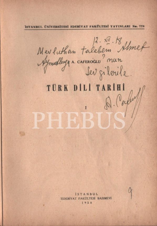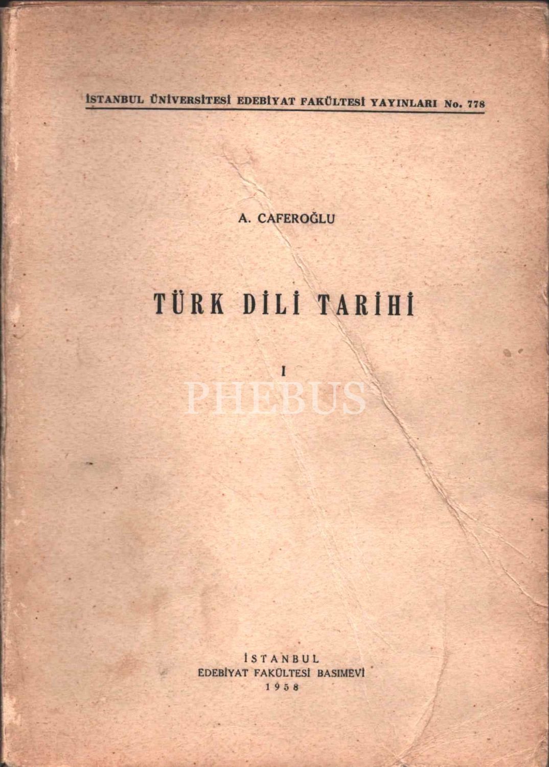 TÜRK DİLİ TARİHİ CİLT I, A. CAFEROĞLU, 1958, İstanbul Edebiyat Fakültesi Basımevi, 184 sayfa, 17x25 cm, İTHAFLI VE İMZALI...