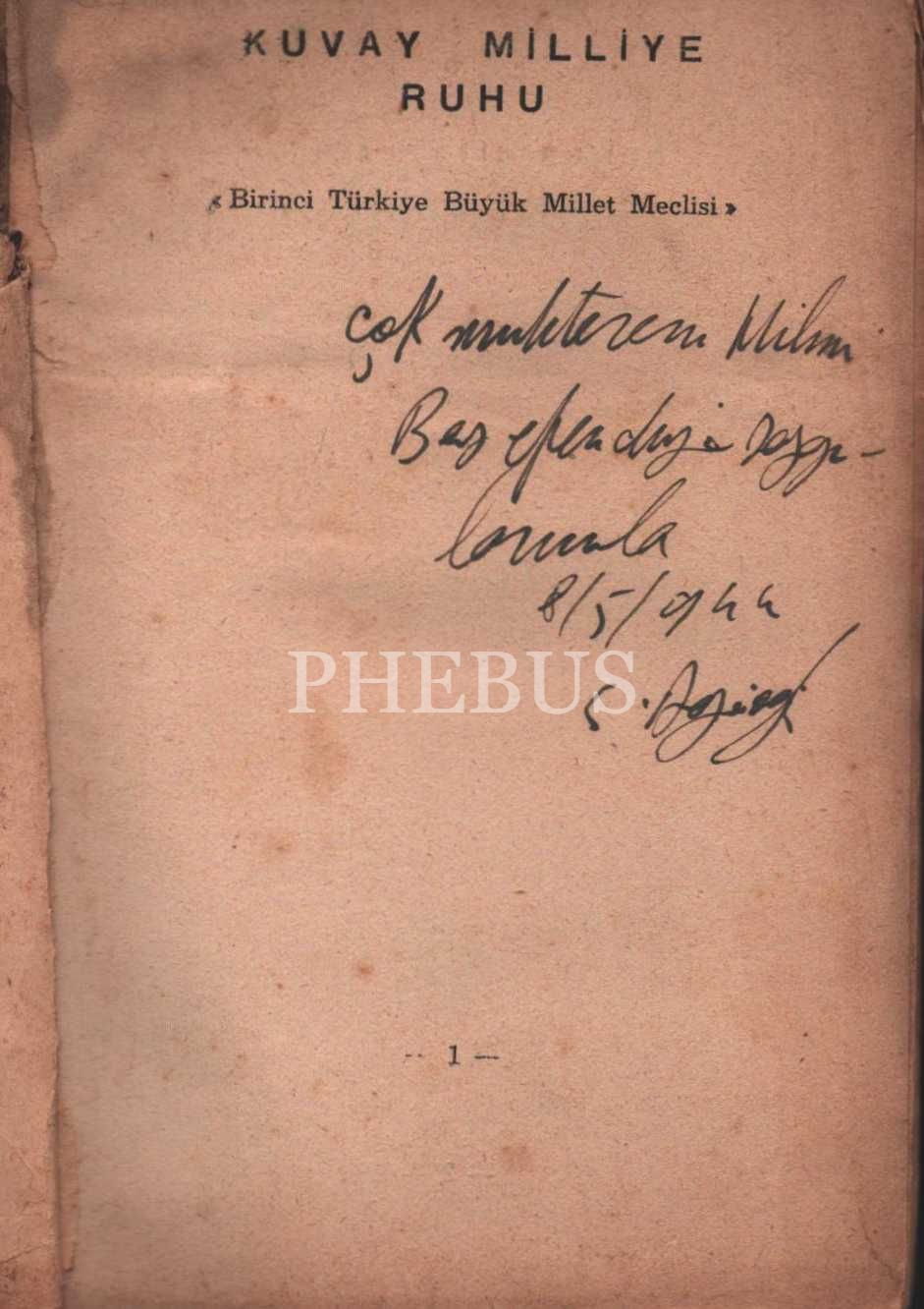 KUVAYİ MİLLİYE RUHU, Samet Ağaoğlu, 1944, Nebioğlu Yayınevi, 272 sayfa, 13x17 cm, İTHAFLI VE İMZALI...