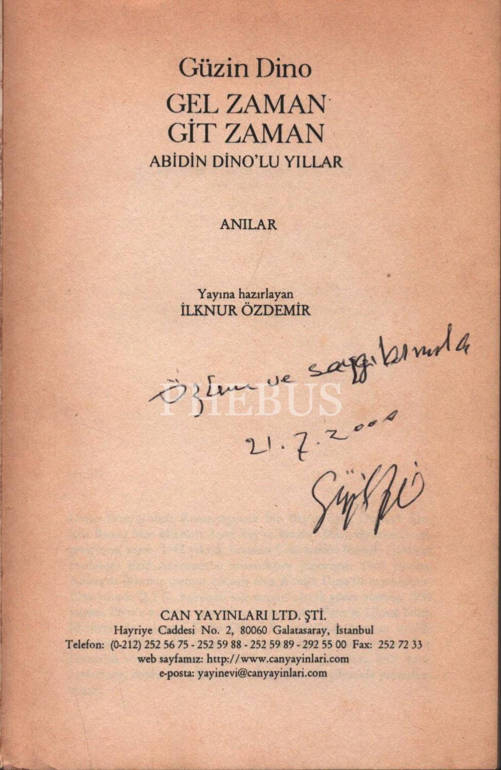 GEL ZAMAN GİT ZAMAN (Abidin Dinolu Yıllar), Güzin Dino, 2000, Can Yayınları, 208 sayfa, 13x19 cm, İTHAFLI VE İMZALI...