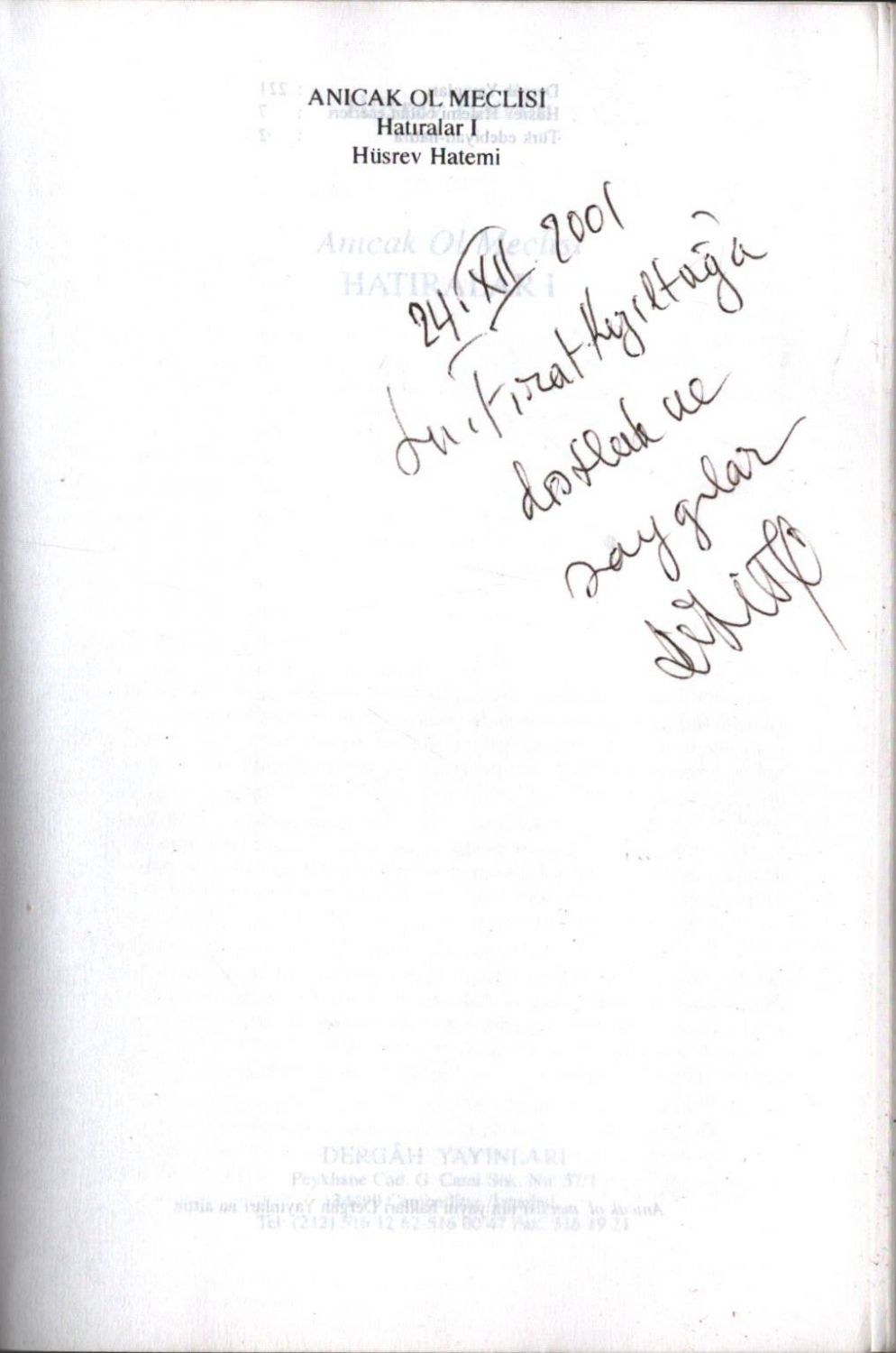 İthaf, "Fırat Kızıltuğ´a dostluk ve saygılar. 24/12/2001" şeklindedir.